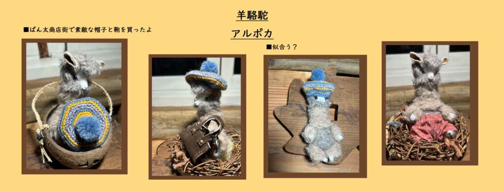 下の画像は、ぱんたの商店街で購入したグッズを身に着けて遊んでいます。