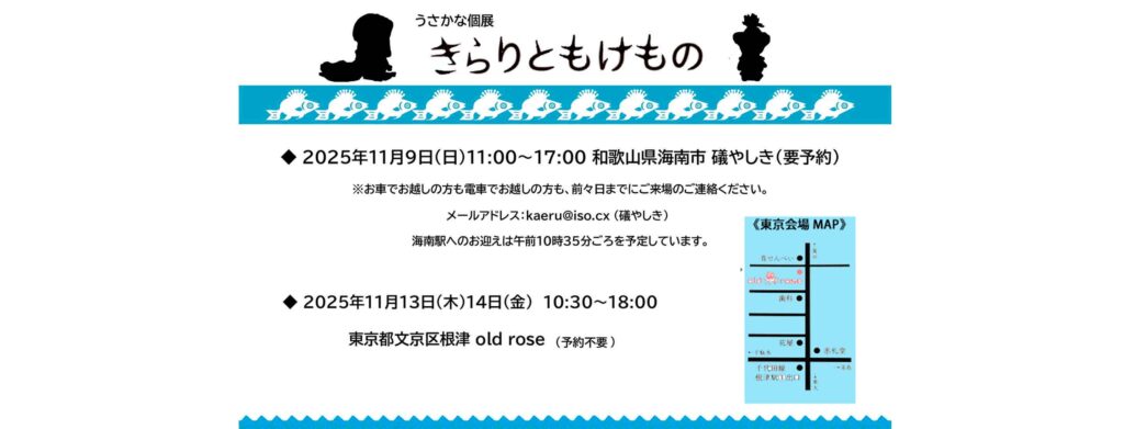 11月9日(日)今日は、和歌山県海南市に在る、礒やしきでの「きらりともけもの」の開催日でした。