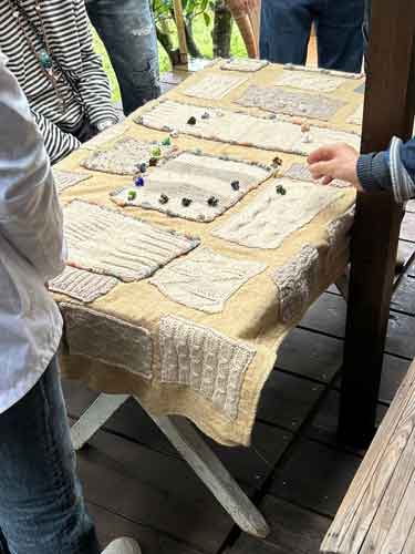 2025.12.02 きらりともけもの きらりともけもの ~おまめ~ みんなで「いっせのせ」で お気に入りのおまめを指差して 被ったらじゃんけんにしましょう。 これから始まるのは おまめの販売です。 丸く並んだ おまめたち。 マイムマイムを踊ってるみたい♪ 椅子取りゲームができそう♪ のお声にクスっとなりました。 いっせ~の~せ!!